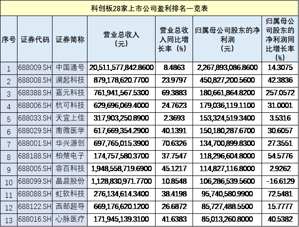 中国财富网讯(衣韵潼)8月29晚间,随着澜起科技(688008)中报披露,科创板首批28家上市公司的“中考成绩”全部出炉。