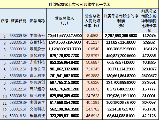 值得注意的是,与2018年相比,科创板首批28家上市公司,全部实现了营收上的正增长。