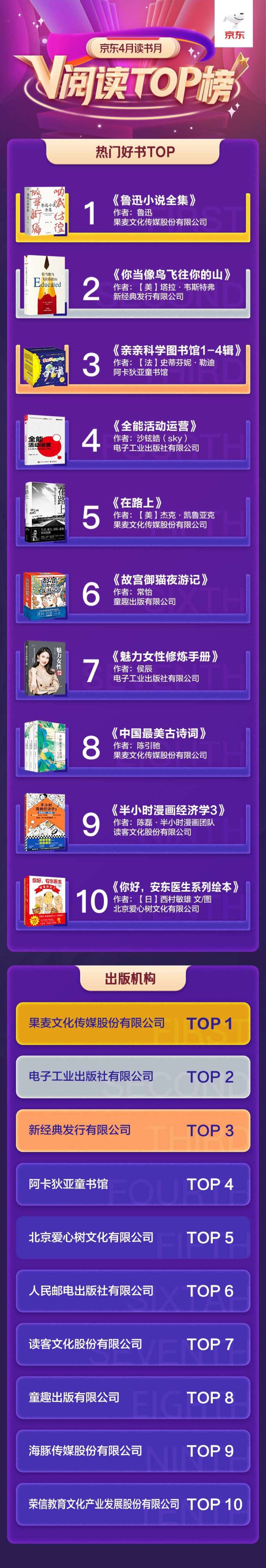 最美人间四月天,正是大好读书时。在4月23日第25个世界读书日到来之际,京东图书“4月读书月”重磅活动——“V阅读时代”评选结果揭晓,评选出的热门好书和热门出版机构两个榜单,将“4月读书月”推向高潮。此次活动在各平台广受关注,#V阅读时代#微博话题阅读量近8000万,讨论量超30万;抖音话题播放量超500万。