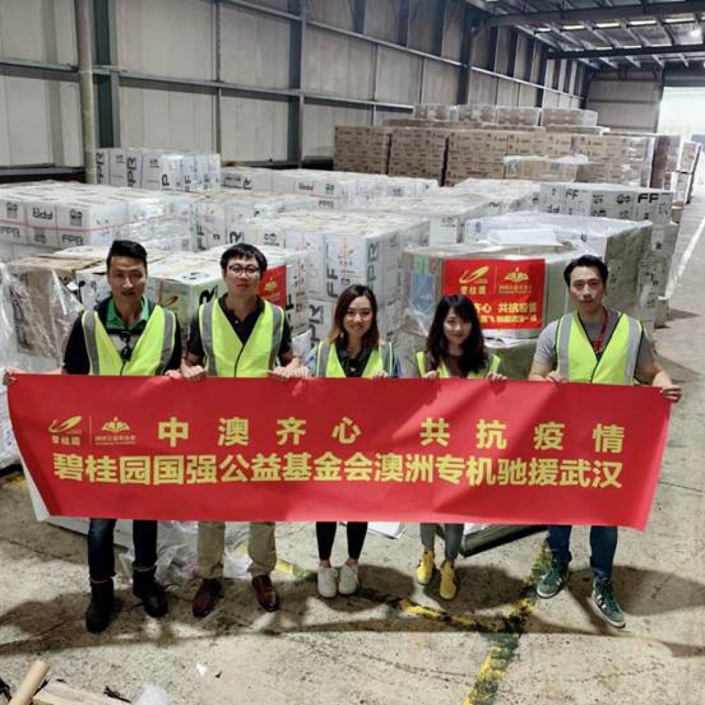 2月24日,碧桂园集团、国强公益基金会将采购到的大批医用和生活物资以专机直飞形式,从悉尼运抵武汉,支援抗疫一线。