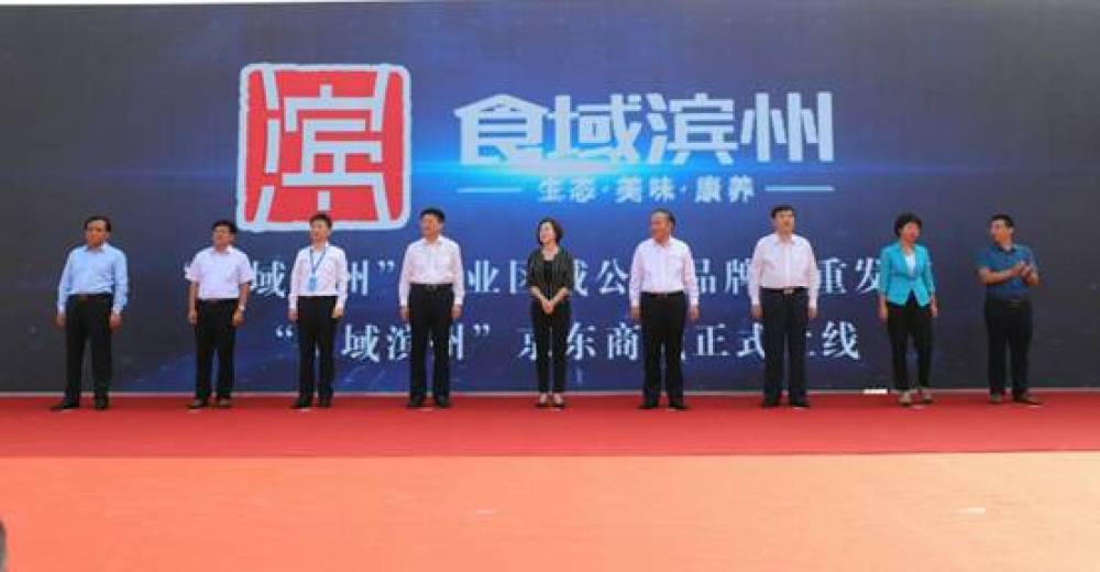 ↑在滨州农民丰收节大会上,“食域滨州”区域公用品牌发布并在京东同步上线