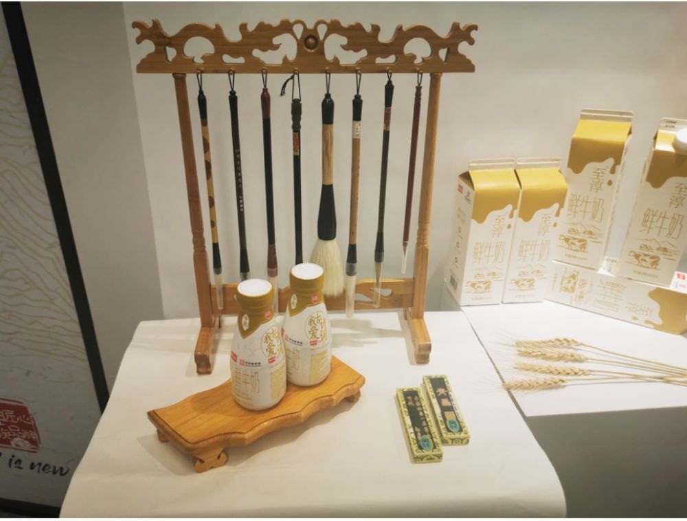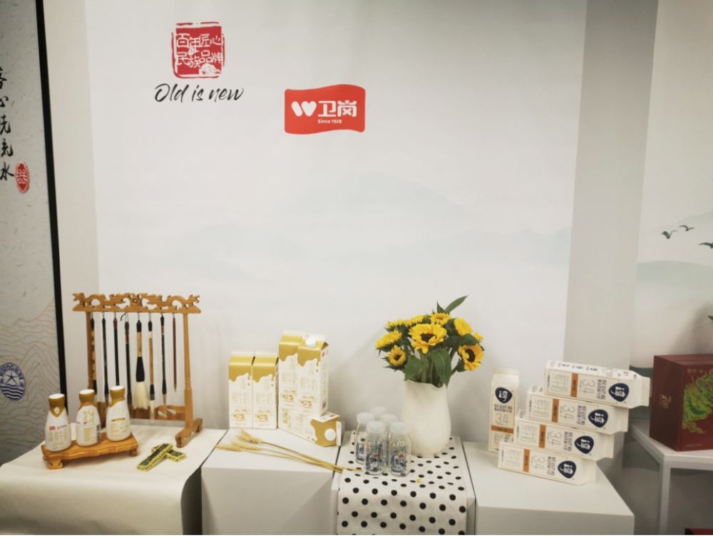 因爱而生为爱传承,为新鲜健康严把质量关,扎根于南京的百年乳企卫岗乳业的展台上,一款“我爱古诗词”的牛奶瓶与笔墨纸砚相得益彰,成为卫岗展区的一大亮点。