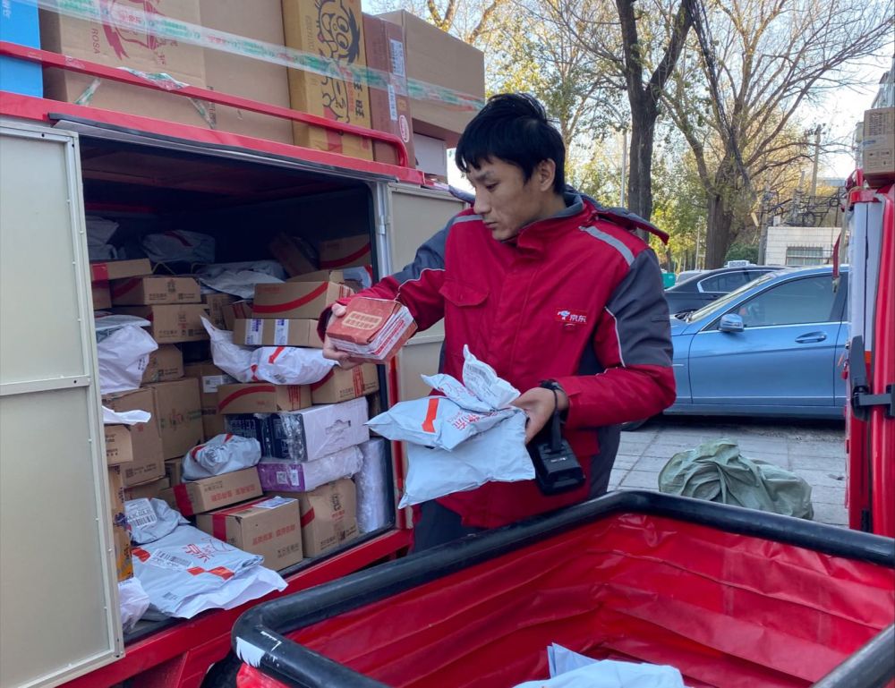 ↑京东快递员配送扶贫产品
