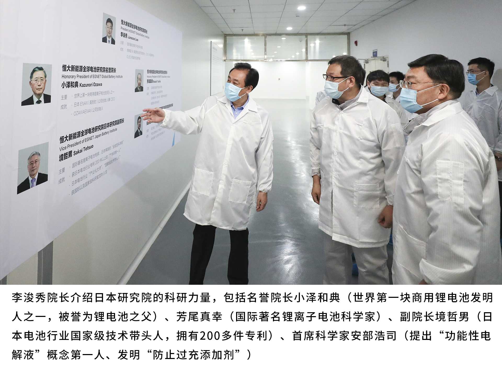 恒大全球电池研究院院长是国际著名电池科学家、原韩国SK集团电池研究院院长李浚秀。大阪分院同样由大咖坐镇,拥有一流科研水平,其名誉院长是世界第一块商用锂电池发明人之一、被誉为“锂电池之父”的小泽和典,以及国际著名锂离子电池科学家芳尾真幸。副院长境哲男是日本电池行业国家级技术带头人,拥有200多件专利,首席科学家安部浩司是提出“功能性电解液”概念第一人,并发明了“防止过充添加剂”。