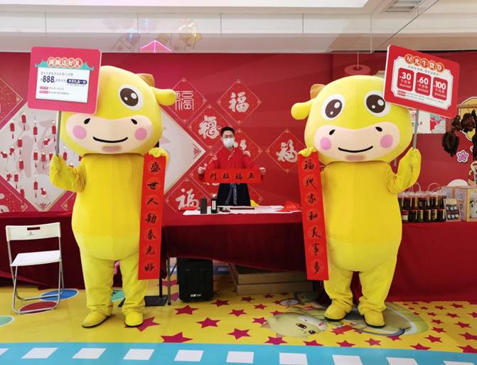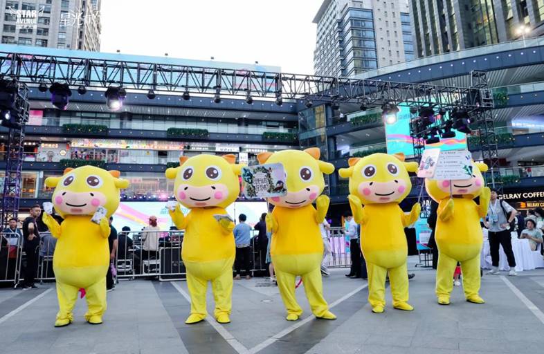 平日里,“牛小星”以导购大使的形象出现与消费者互动;在星光大道街区,人们可以扫码听音乐,浏览展览讯息,可以把自己的手模在大屏幕上与明星手模放在一起发朋友圈;因为充满动感与丰富的场景,越来越多人来在这里直播。