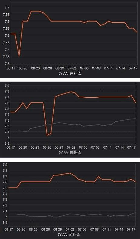 3年期的AA-级产业债、城投债、企业债收益率都有不同程度下行