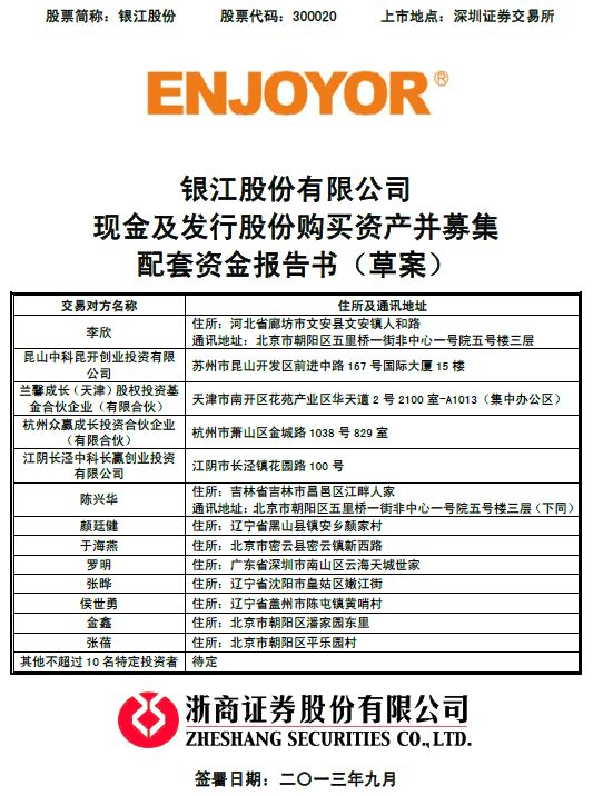 回查公告,银江股份于2013年9月5日晚间发布重组预案,公司拟以发行股份和支付现金方式收购亚太安讯合计100%股权,交易总价为6亿元。