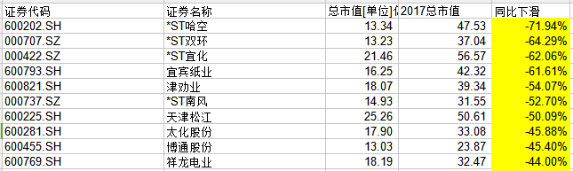 以跌幅最深的*ST哈空为例,其大股东工投集团从两年多前就开始筹划转让公司股份,分别在2016年3月、2017年1月、2018年3月三次启动股权转让,至今未能遂愿。