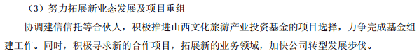 不过,太化股份2017年3月的动作还是有点意思:公司出资300 万元与建信信托、普惠旅游和普惠资管共同发起设立基金管理公司,并以该基金管理公司作为GP发起设立山西文化旅游产业投资基金,公司股份占比为30%。这是公司前次重组终止后,第二次明确表示拟投资文旅产业。公司向非化工业务的转型在年报中也得到确认。