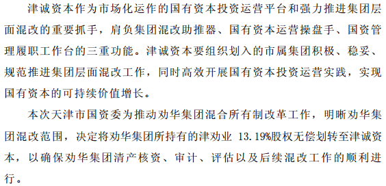 类似地,6月28日,津劝业原大股东劝华集团所持5491.82万股国有股权向津诚资本的无偿划转完成,津诚资本成为津劝业新的控股股东,而公司实际控制人仍为天津市国资委。