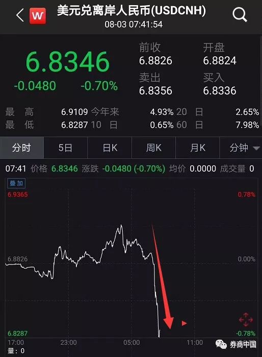 8月3日,离岸人民币汇率跌破6.9重要关口。
