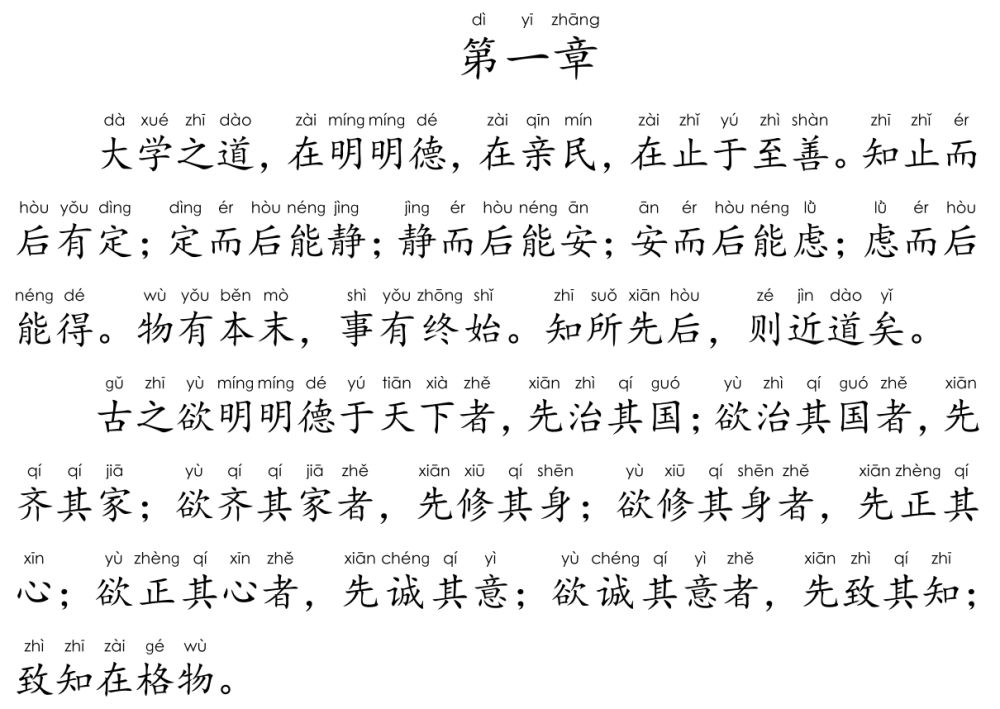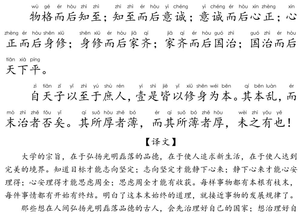 物格而后知至,知至而后意诚,意诚而后心正,心正而后身修,身修而后家齐,家齐而后国治,国治而后天下平。