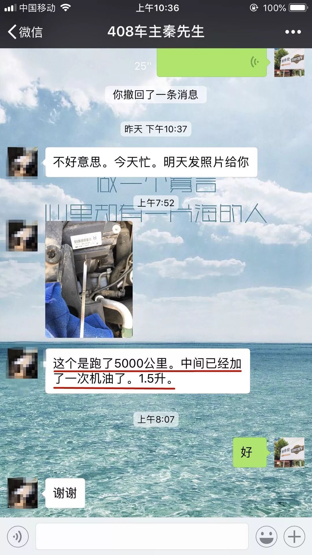1.8L 408车主杨先生:朋友的车烧机油,这才抽出自己的机油尺检查,行驶3万多公里,油液位置已经低于刻度尺下刻度线,4s店象征性刷故障码、检查尾气,解释只要机油指示没有亮,都是正常的。目前正在做1000km的机油测试。就算再多检查、测试,无任何解决措施,这机油烧到什么时候是头?