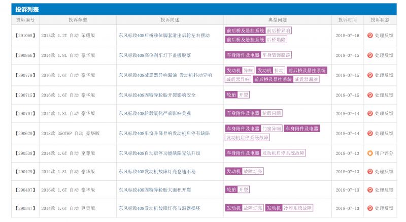 曾经的“全能男神”——东风标致408,是标致的当家花旦,但是近期却在投诉领域,“名声大噪”,长期盘踞投诉榜前列,再浪漫的法国情怀,也无法掩盖严重的,产品质量及售后问题了。