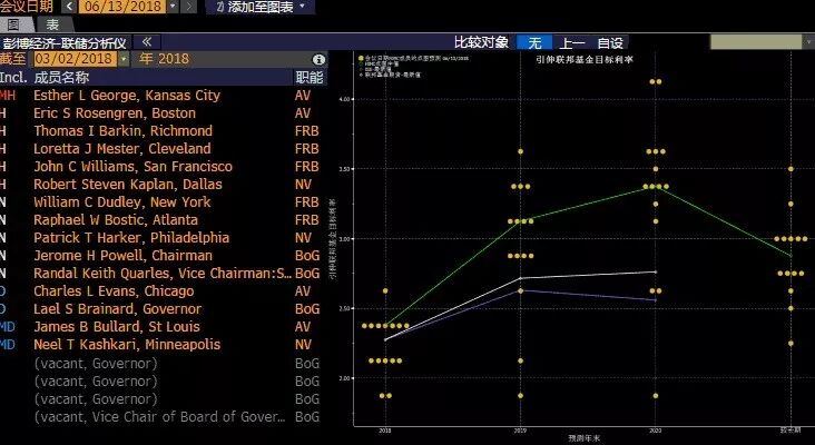 此次美联储有八位决策者预计全年将有四次或更多的25个基点加息,而在3月只有七人做出了这样的预测。认为三次或更少为合适的人数则从八位减少到七位。预测中值还预示,美联储在2019年会加息三次,从而令利率处于决策者们认为既不刺激也不抑制经济的水平上方。