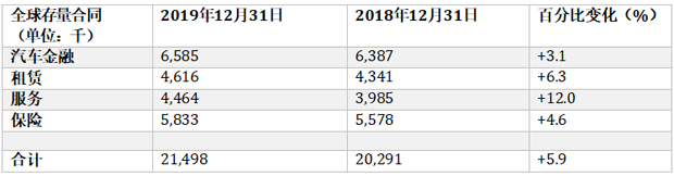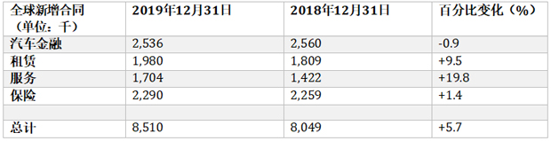 截至2019年底,全球存量合同超过2149.8万份,与2018年同期2029.1万份相比增长5.9%。大众汽车金融服务业务板块整体总资产增长至2235亿欧元,与去年同期2076亿欧元相比增长7.7%。
