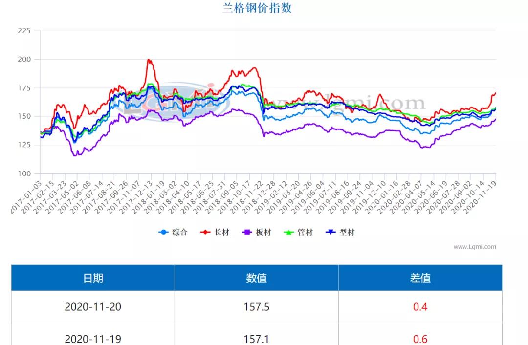 11月以来钢材价格持续上涨 图片来源:兰格钢铁网