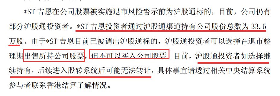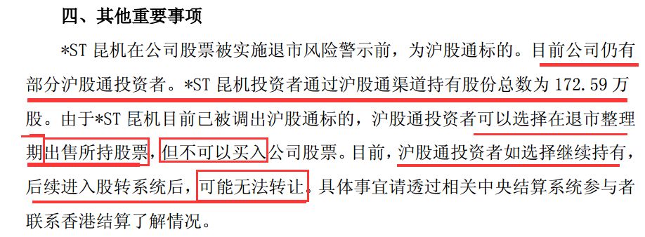 值得注意的是,此番退市的两只股票此前均为沪股通标的数据显示,在今日复牌前,退市昆机尚有172.59万股沪股通持股股份,退市吉恩也有33.5万股沪股通持股股份。按照两只股票进入退市整理期前的价格计算,沪股通在两股上的持股市值保守估计共有1337万元。