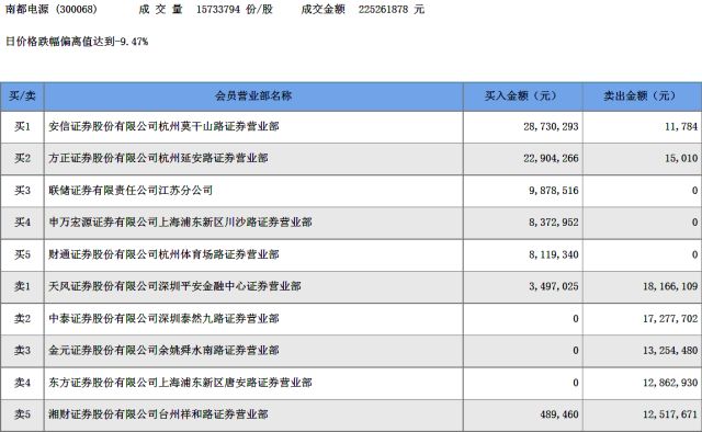 事实却是,6月14日的龙虎榜显示,南都电源、传化智联的五个卖出席位没有出现任何重合: