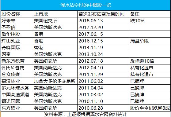 查阅浑水的官网可以发现,其做空中概股最早可追溯到2010年,到2018年6月13日,浑水在过去8年里,已经对至少14只中概股发起过攻击。