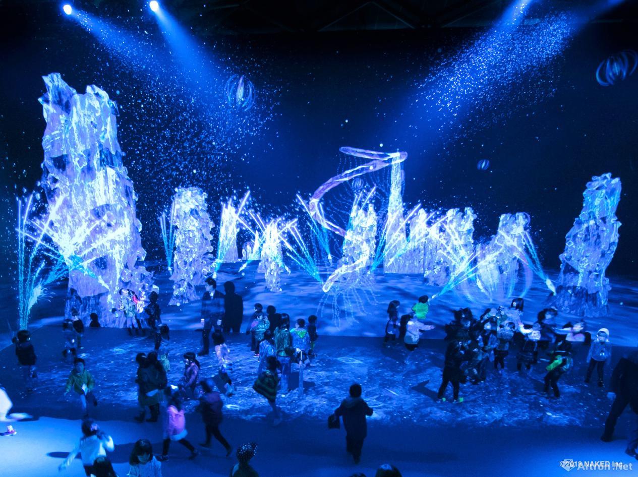 此次展览,NAKED Inc.用数字技术和水创造了一个使人感受到“生命”的世界,这也是一个大人与孩子、男女老少都能够享受其中的展览:“我想像这种在平时生活中无法经历的体验能够帮助培养孩子们自由的想象力和创造力。”村松亮太郎讲到。