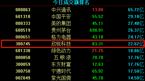截至收盘,欣锐科技股价跌停,日内成交23.28万手,成交金额22.62亿元,排在两市所有个股第6位,换手率高达81.32%。