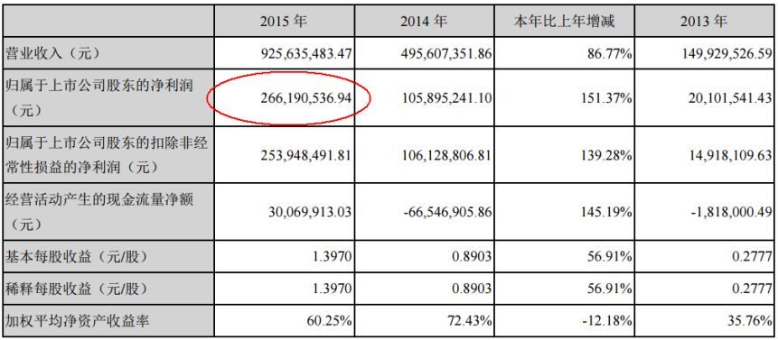 雅百特最初发布的2015年报显示,该公司2015年实现营收9.26亿元、同比增长86.77%,实现股东净利润2.66亿元、同比增长151.37%,同时扣非净利润也达到2.54亿元、同比增长139.28%,完成了业绩承诺。