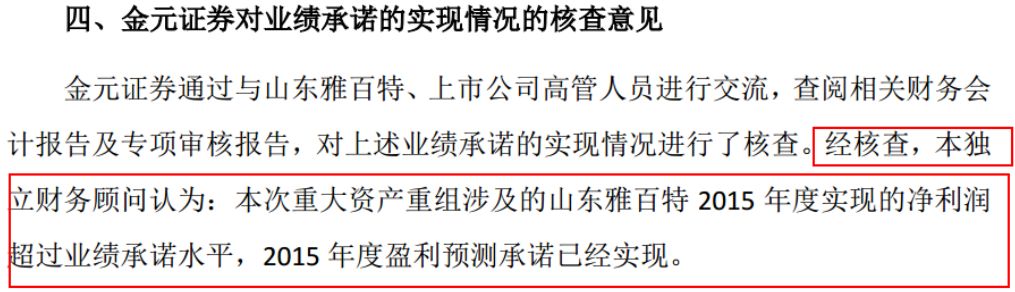 并且,在2015年报出炉后,金元证券于2016年4月宣布,山东雅百特已经完成业绩承诺。
