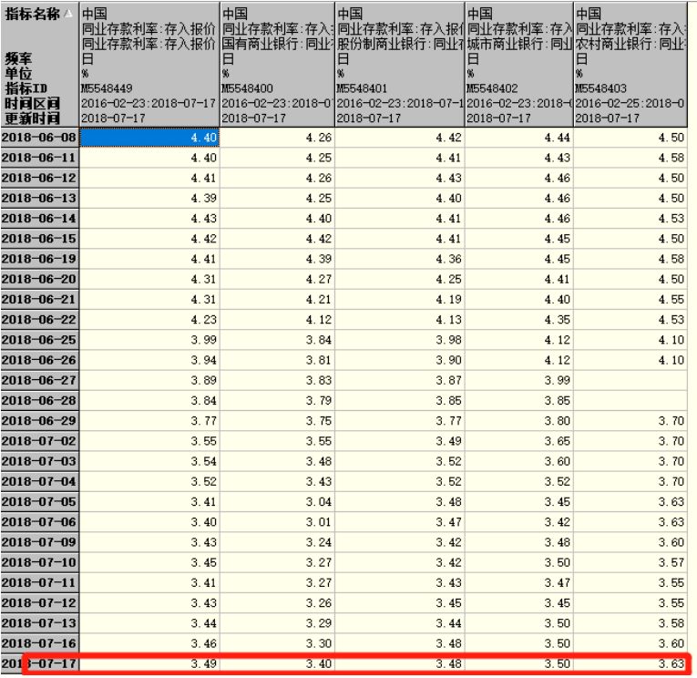 从WIND的统计数据来看,今天,7月17日,3个月同业存单平均利率为3.49%。这也是7月份以来,一直维持的3.40-3.5%一线水平。从3个月同业存单利率来看,此前最近一次,6月15日招标价格为4.73%,而同期3个月同业存单为4.42%。可见,国库现金定存利率的变化,与同业存单利率的变化基本同步。