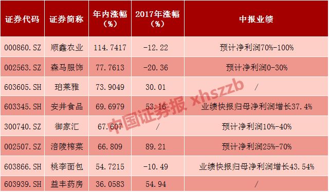 这次的消费股行情主力却不是高大上的“茅台五粮液”以及家电双雄美的格力了,取而代之的是卖牛栏山二锅头的顺鑫农业,做火锅配料的安井食品和涪陵榨菜、桃李面包等二三线大众食品股,此外,还有做国产化妆品的御家汇、珀莱雅,以及大众服饰的森马服饰等等。