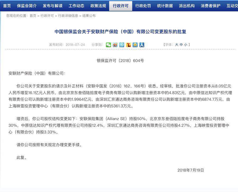 原标题:4.83亿入股外资安联财险,京东终获保险牌照!BATJ已全部入局保险业