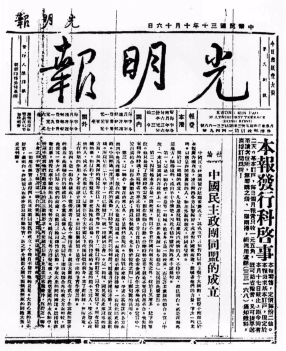1941年于香港创刊之《光明报》,报名题字为梁漱溟墨迹。