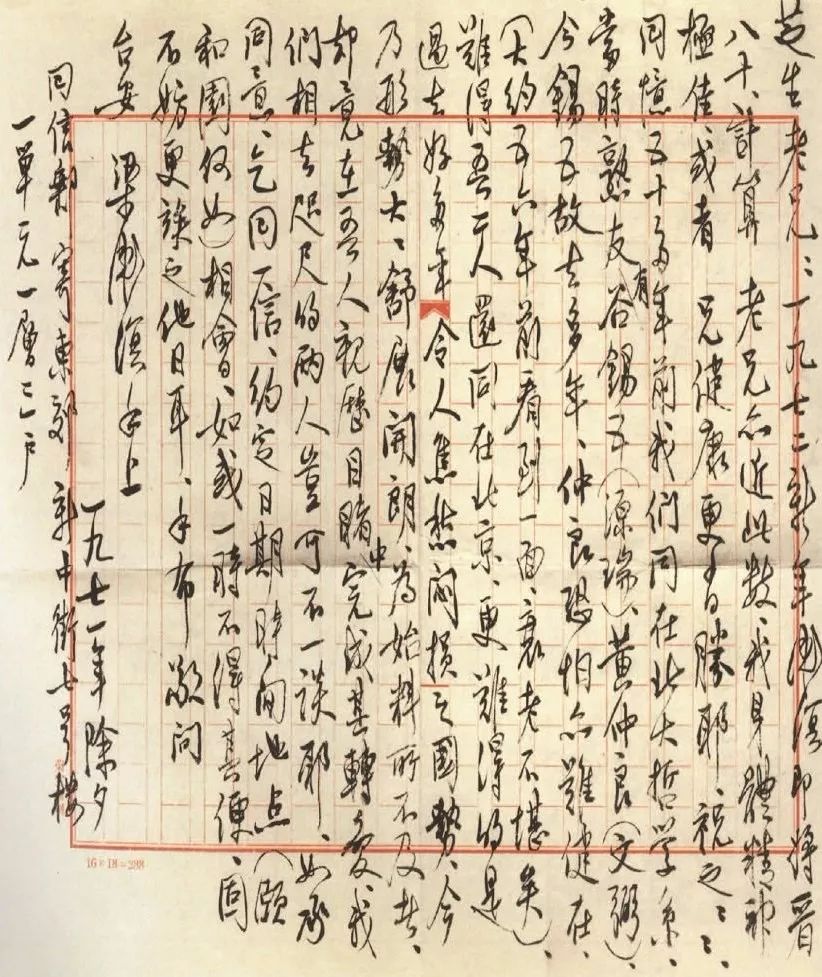 1975年7月15日,在起笔数十年后,梁漱溟最终完成《人心与人生》,自觉“平生大愿基本上可了”,随后开始整理存信,以自记或批注的方式订正写信日期,交代相关背景。此时他已年过八旬,民国时期的师友多已过世,乡村建设运动中的追随者也所剩无多,且星散于各地,各人在1949年后历次政治运动中命运多舛,多已是积年不得相见。故梁漱溟整理往来书信,除个人性的交待后事外,亦有怀念友人、为过往的团体生活留存见证之意。