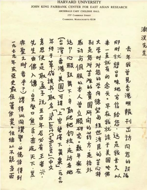 另一时代转折则为“文革”。“文革”初期梁漱溟家被抄,他被赶往一间小厢房居住,四五十天不得自由。在答复各方关心的若干信件中,他不过说“我胸次只小小不愉快而已”。“事情发生的初期几天内,我稍有些不自然外,却从内心到外表基本不改常度。几天之后到现在就完全平平常常了。” 非常年代通信,或有不可多言之戒;但在“文革”之后,他在通信中述及此事,平淡之气不改,则可见此平淡非出于忌讳,乃是本性的自然流露。