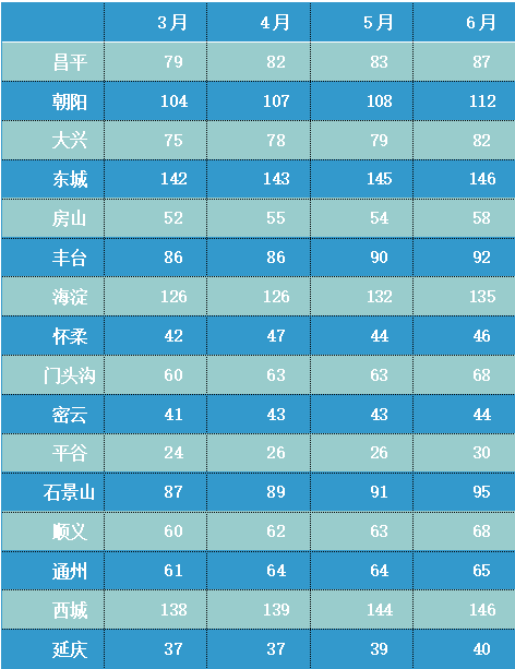 今年3月至6月,北京市各区租金平均值均有上涨。租金最贵的东城区和西城区,房租平均值达每月每平方米146元。