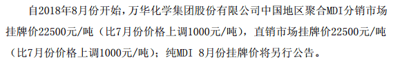 类似地,在MDI领域话语权突出的万华化学,近日公布了2018年半年报,净利润同比增速约43%。