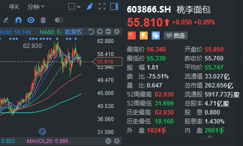 今年二季度以来不断创出新高的桃李面包也符合上述标准。