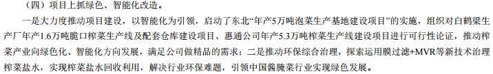 在生产端,顺应消费方向,项目扩建主要是提升主力产品脆口榨菜的占比: