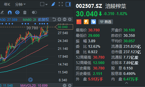 市场已作出选择,7月31日,涪陵榨菜以近7%的涨幅再次刷新历史最高价。8月1日,涪陵榨菜再度创出新高(30.78元/股),但受累于大盘,收盘有所回落。