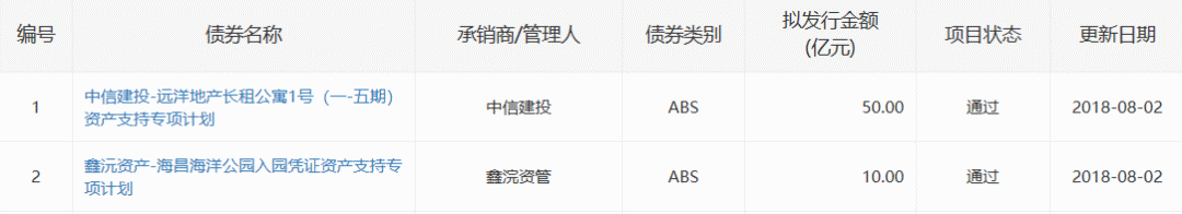而上交所上周共审核通过了7只ABS,总额212.39亿元,其中涉及房地产企业的有3只。