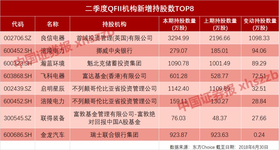 除沪深港通北上资金外,QFII二季度持仓动向亦显示,外资正密切关注A股市场动向。