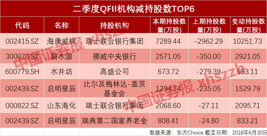 海康威视则是二季度遭QFII减持力度最大的个股,UBS AG二季度对其减持2962.29万股,但目前仍持有7289.44万股,位列第8大流通股股东。