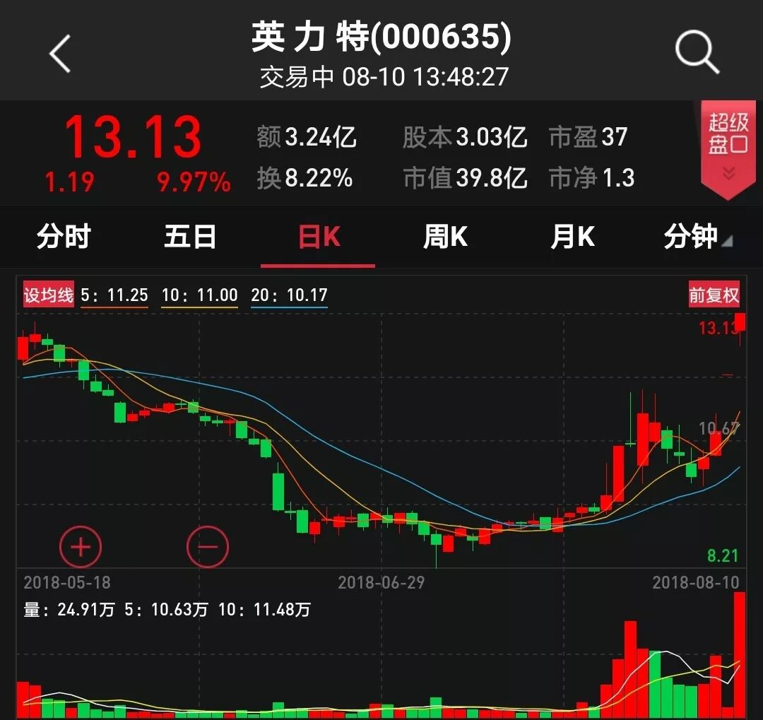 盘面显示,本次半年度利润分配方案出炉前,英力特的股价在7月9日至8月8日内上涨了25.29%。