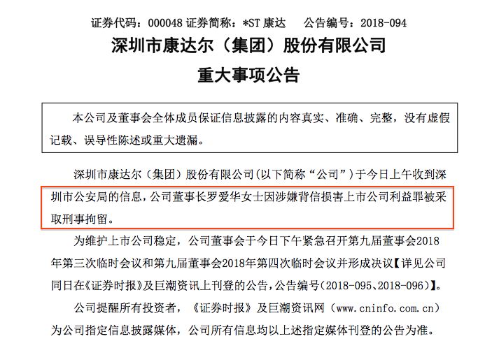 *ST康达8月13日晚间公告,公司于今日上午收到深圳市公安局的信息,公司董事长罗爱华因涉嫌背信损害上市公司利益罪被采取刑事拘留。为此,董事会同意免去罗爱华公司董事长、战略委员会委员、审计委员会委员、总裁职务。同时,选举熊伟为公司第九届董事会董事长。