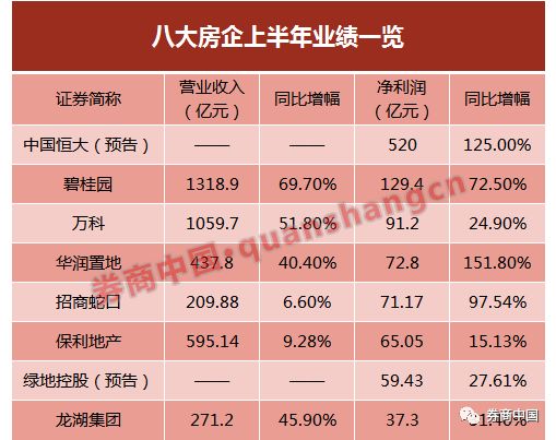 如果在加上中国恒大和绿地控股,可以看到,上半年龙头房企的日子可谓过的红红火火,赚得盆满钵满。据券商中国记者统计,除了龙湖地产以外,上述7大地产公司净利润均超过50亿元,同比增速均超过20%。