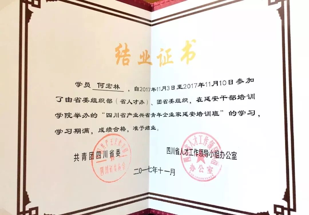 2017年成为四川省产业兴省青年企业家培养计划首批培养对象。