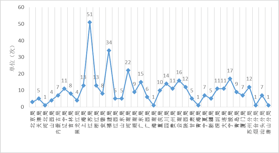 其中江苏、福建、河南等地监管机构处罚较多,罚单数均超过20张;河北、海南、青海、烟台、唐山等地监管机构处罚较少,均为1张罚单。