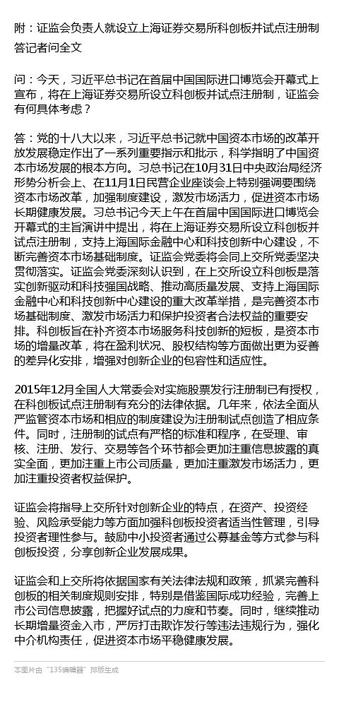 二是,将在上海证券交易所设立科创板并试点注册制,支持上海国际金融中心和科技创新中心建设,不断完善资本市场基础制度。