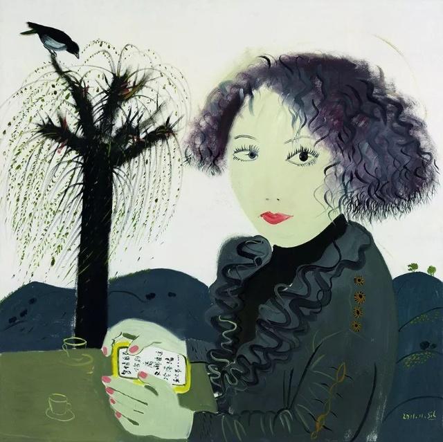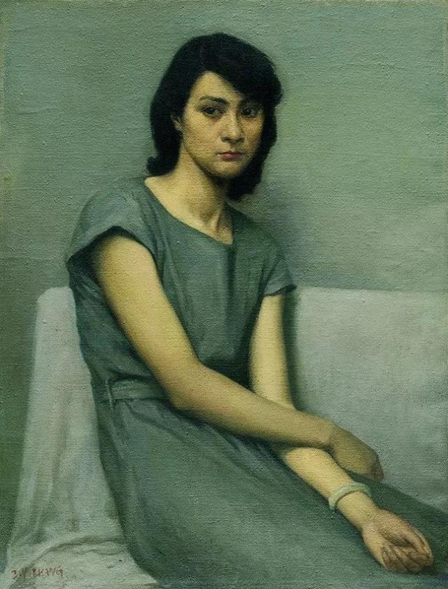 ▲《穿灰色裙子的姑娘》,张祖英,78cm×58cm,布面油画,1987年