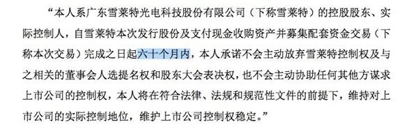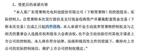 近日,雪莱特控股股东似乎玩了一个承诺的数字游戏。公司控股股东柴国生发来《关于提请变更承诺事项的函》,柴国生于公司发行股份及支付现金购买资产并募集配套资金事项交易实施过程中做出了关于维持控制权的承诺,柴国生提请变更上述维持控制权承诺。